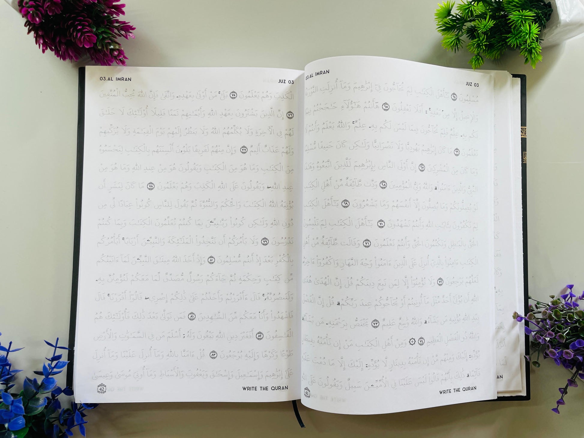 Emaan's Traceable Quran kits enables individuals to trace each verse of the Quran with precision. These kits are designed with precise calligraphic outlines, guiding users through the sacred text letter by letter.